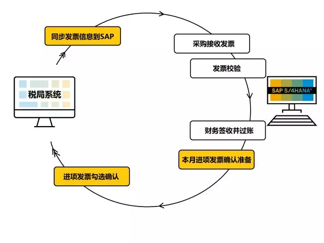 在整個(gè)進(jìn)項(xiàng)發(fā)票管理主要流程中,圖中被高亮的手工流程如今都可以被發(fā)票機(jī)器人所取代。