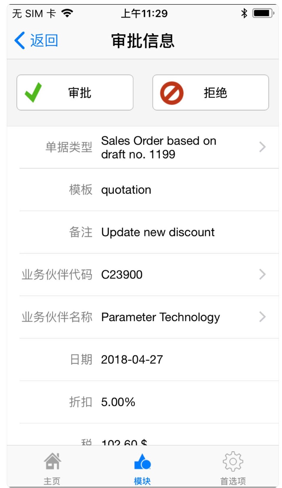 下面是SAP Business One 移動(dòng)應(yīng)用APP截圖: