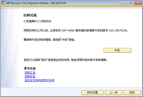 這里會顯示遷移完成的結(jié)果(成功或失敗)。在遷移完成后,如果您想繼續(xù)對遷移后的SAP HANA數(shù)據(jù)庫進(jìn)行升級,可以點(diǎn)擊'升級'按鈕,則會繼續(xù)進(jìn)入升級向?qū)АD部梢赃x擇'完成'按鈕以退出遷移向?qū)АM瑫r您也可以點(diǎn)擊'更多信息'中的鏈接來很方便地訪問遷移的匯總及日志信息。